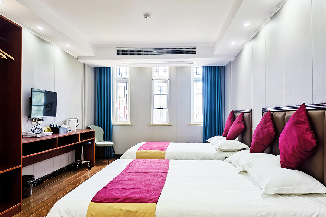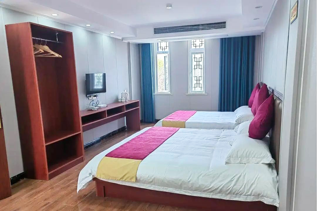合肥朋来居宾馆整体采用徽派风格设计,外观是粉墙黛瓦,雕花窗棂相映,内部则巧妙融合了现代舒适性与古典雅韵。内里共为您提供了15间客房,设有标间、大床房...等不同规格,能同时接待36人入住。客房设计汲取新中式美学,素雅的淡色床品搭配深木色家具,明亮的灯光为整个空间带来通透。空间布局简约而不失层次,既保证了采光,又增添了空间的现代感。下榻于此,您收获的不仅是一夜安眠,更是一段沉浸式的徽派生活体验。