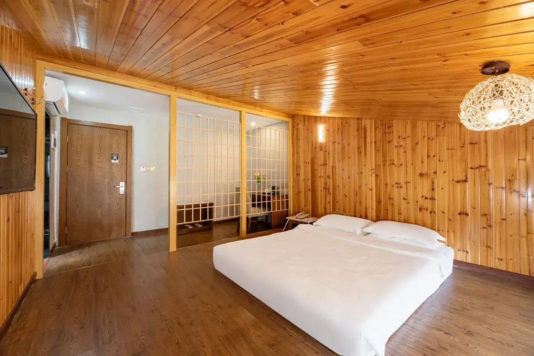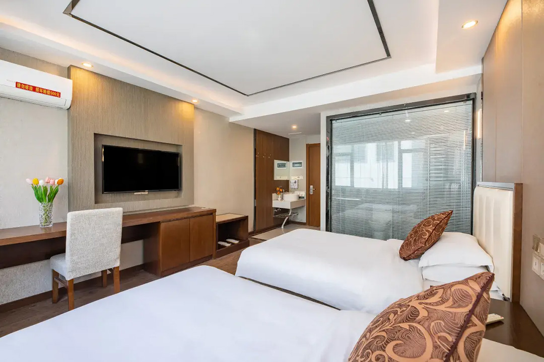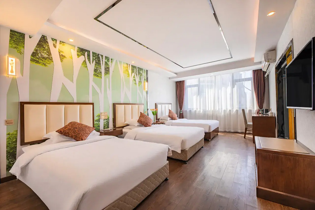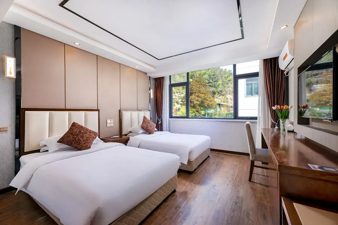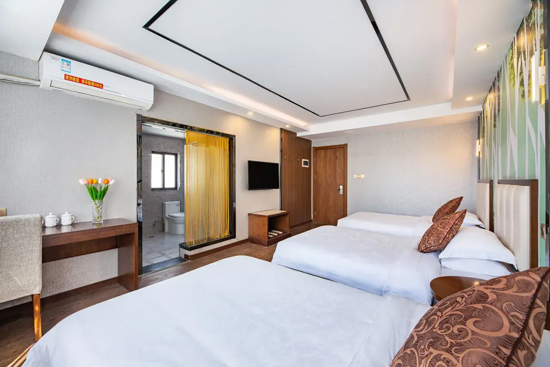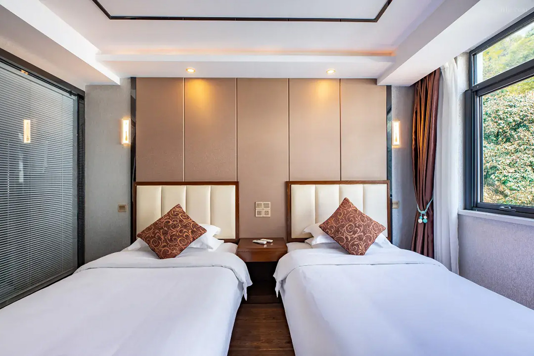 黄山开蔓酒店规模适中,共有24间优质客房,设有标间、大床房、三人间等多种规格,能同时接待48人入住。房间设计风格独特,装修精致美观,整体布局严格按照星级酒店规格,并秉承连锁品牌专业化的服务标准,均配备有空调、液晶电视、无线网、独立卫生间、24小时热水等设施,环境温馨自然。同时酒店还精心准备了品牌沐浴洗护套装和柔软亲肤床品,每一处细节都严格把关,让您住的安心,用的放心,拥有一夜好眠。