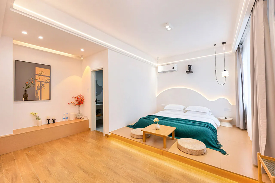 东山岛御栈民宿住宿环境温馨,共有21间舒适客房,为您提供有双床房、榻榻米、大床房、亲子间等多种规格,能同时接待45人入住。客房整体以轻奢ins风格设计,延续原木色系为主调,宽敞明亮的空间搭配柔软床品,清新配色点缀极简装饰,尽显清新格调。全屋智能语音控制系统解放双手,极米4K投影仪打造私人影院,智能马桶与新风系统保障现代舒适,24小时管家服务贴心周到,让每一位旅人都能卸下疲惫,沉浸式感受海岛慢生活。