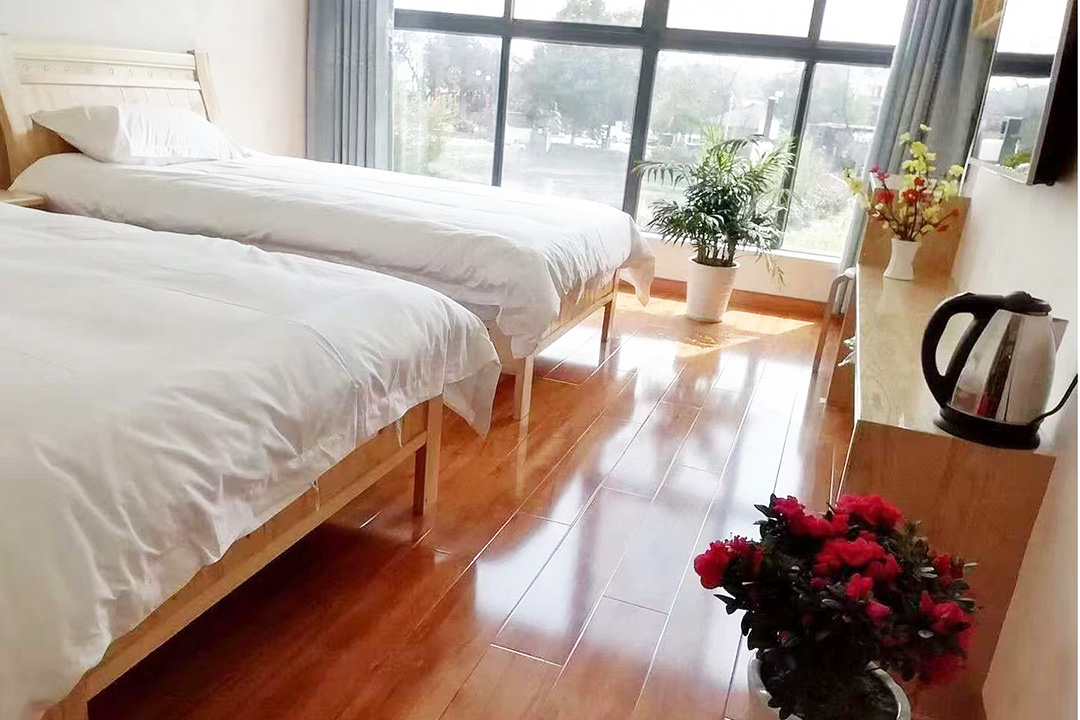 高淳慢城山水人家农家乐在设计上保留原有宅院框架,并在其中加入现代元素,力求为您打造一处兼具古韵与舒适的居停空间。这里整体规模适中,共有25间优质客房,提供有20间标间和5间大床房,能同时接待50人入住。房间设计以田园风格为主,原木色系的家具淡雅温馨,每间客房都配备了齐全的硬件和生活设施,部分房间还安装有观景大窗,让您足不出户就能领略乡村美景,感受城市中难得的宁静与平和。