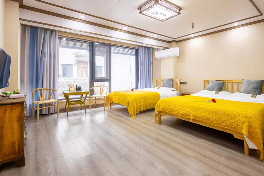 昆山周庄三元楼精品客栈临河而建,整体装修古朴典雅,古色古香,与周庄整体的历史氛围完美融合,毫无突兀之感。推门而入,一种精致江南的生活气息扑面而来。为您提供有12间优质客房,包含8间标间、4间大床房,能同时接待24人入住。客房设计在简约中透露出不失奢华的巧思,每一间都经过精心布置。房间内空调、电视、无线网、独立卫浴与24小时热水等现代化设施一应俱全,床品柔软,灯光温馨,保证了居住的舒适与便利,让您在这里能卸去疲惫,尽享舒心。