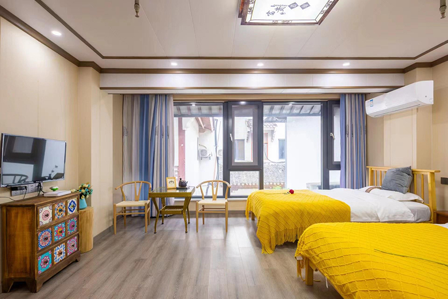 昆山周庄三元楼精品客栈集休闲、观景、度假、娱乐于一体,不仅食宿条件优越,店内还配备了棋牌、KTV等丰富娱乐设施,无论是亲友欢聚,还是午后闲暇,都能找到适宜的消遣方式。若恰逢细雨时节,居于室内,静看雨滴洒落在院中景致之上,更能体味到江南生活那份细腻与宁静的韵味。