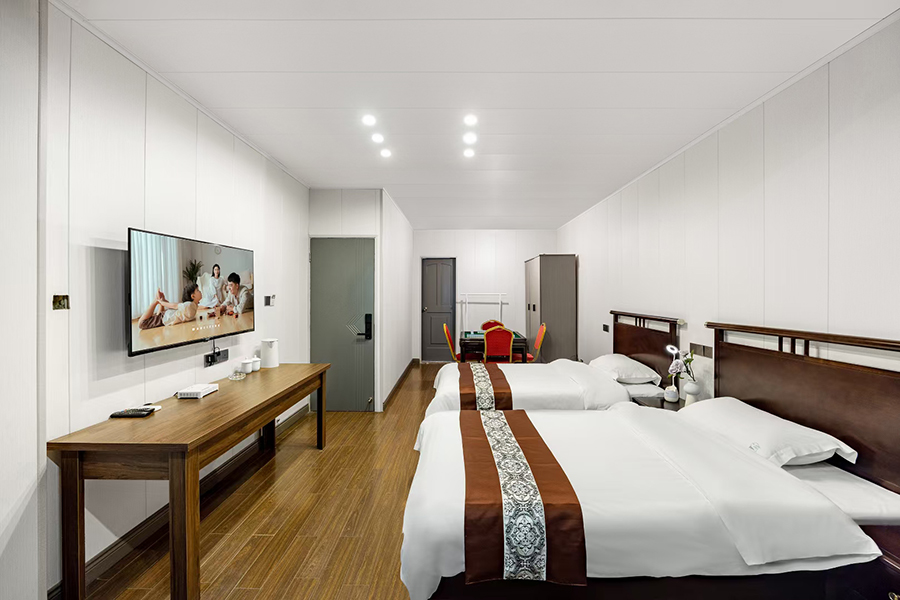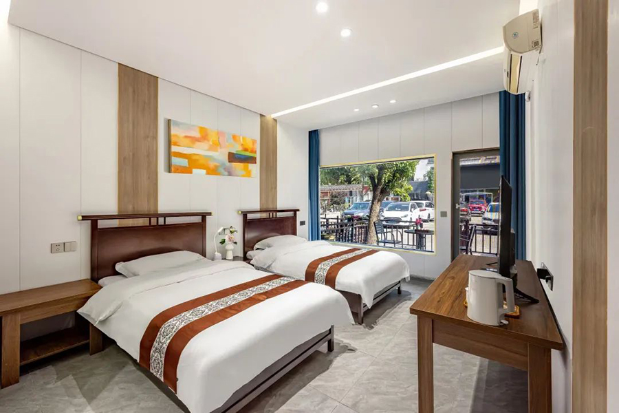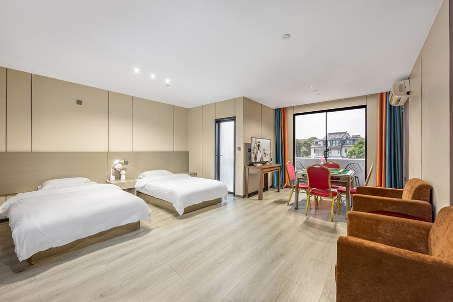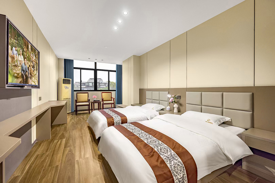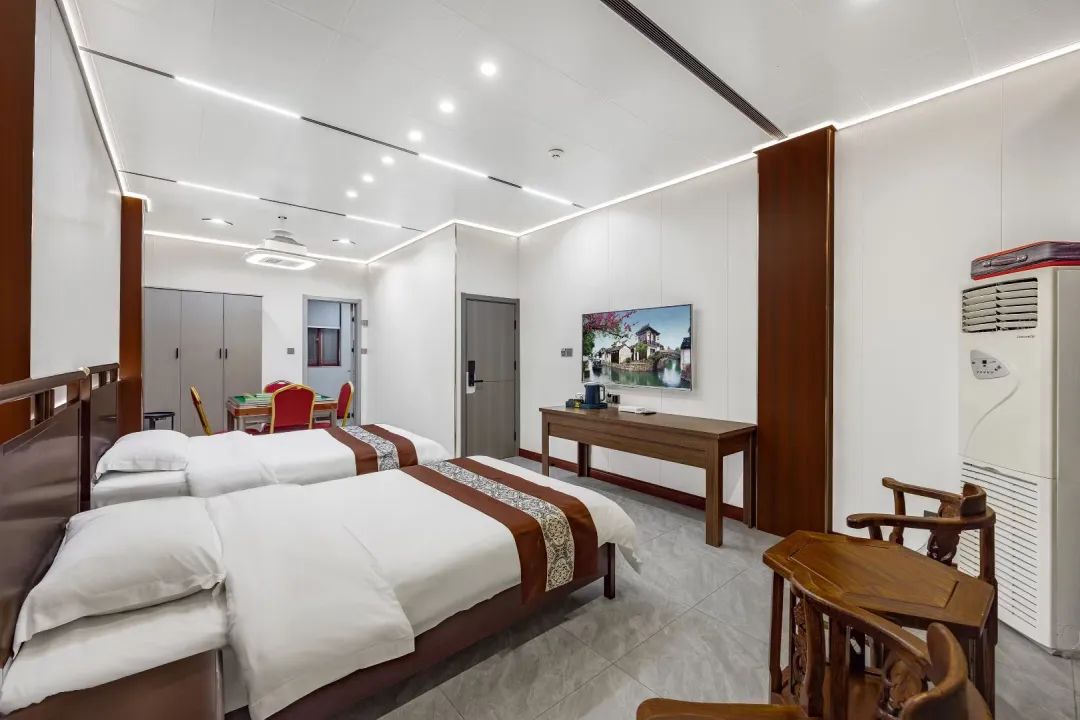 昆山周庄富贵香草园大酒店规模宏大,内里设有68间优质客房,含60间标间、8间三人间,能同时接待150人入住。客房内部装饰不以浮华取胜,而以舒适温馨、格调优雅见长,力求为旅人提供如家般的放松与妥帖。这里每间客房都配备了空调、电视、无线网、独立卫生间、24小时热水等设施,床单被罩全部一客一换,环境与布局完全对标五星级,让您在这里享受度假时光的同时,也能拥有一颗静谧温馨的住宿环境。