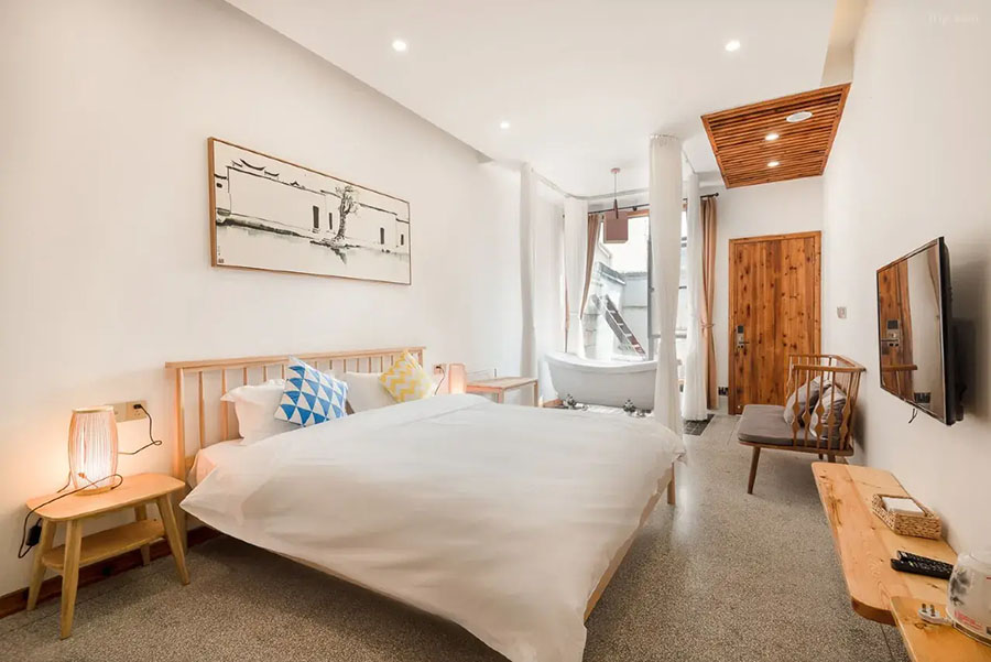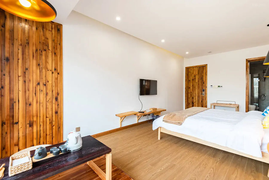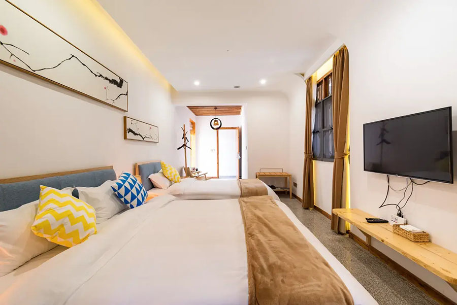 锦溪院落中庭·溪巷里民宿共有8间客房,提供有4间大床房、2间家庭间和2间复式大床房,能同时接待22人入住。室内采用新中式田园风格设计,原木家居搭配素色墙面,留白恰到好处。木格窗棂筛进天光云影,古画、茶具等陈设雅艺十足。空调、电视、无线网、干湿分离位于等设施兼具舒适与便捷,让您既能沏茶赏景,也能于檐下静听溪声,每一刻都堪称穿越时空的风雅体验。