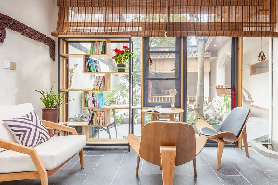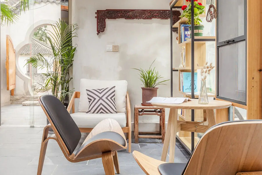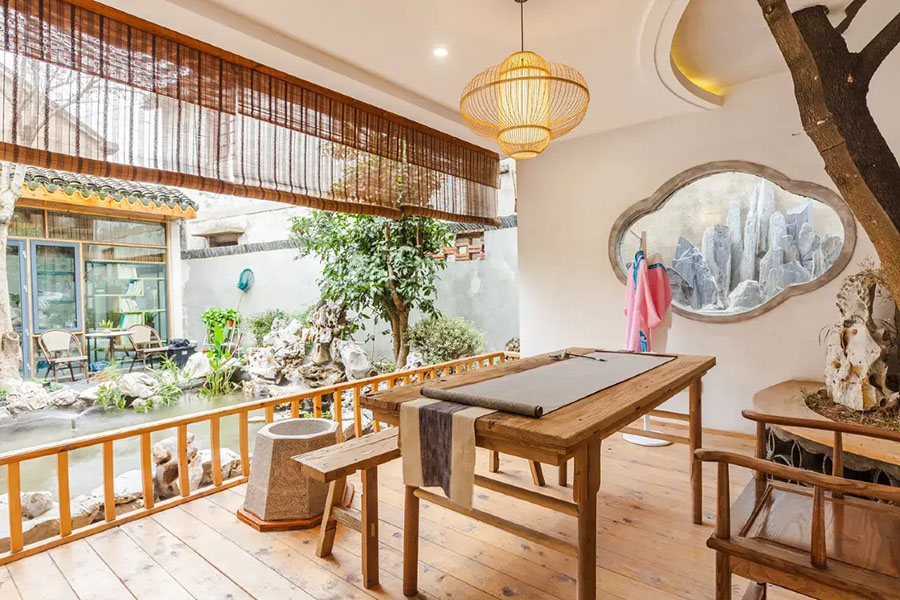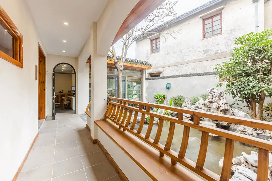 锦溪院落中庭·溪巷里民宿以“古院新生”为设计理念,将江南合院形制与现代雅致美学完美交融。推开雕花木门,青瓦白墙围合出一方静谧中庭,古树苍劲挺拔,花丛与修竹点缀其间,小鱼池以自然石为驳岸,潺潺流水与鸟鸣相映成趣。公共区域配备了书吧、会议室、前台休息区、户外庭院、烧烤区、休闲餐吧等,能让您在这里停下脚步,感受远离喧嚣的静谧,体验久违的怀旧生活。