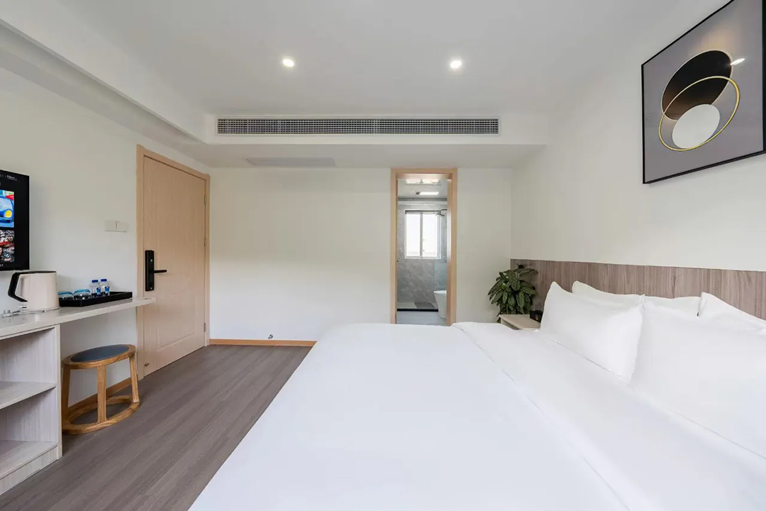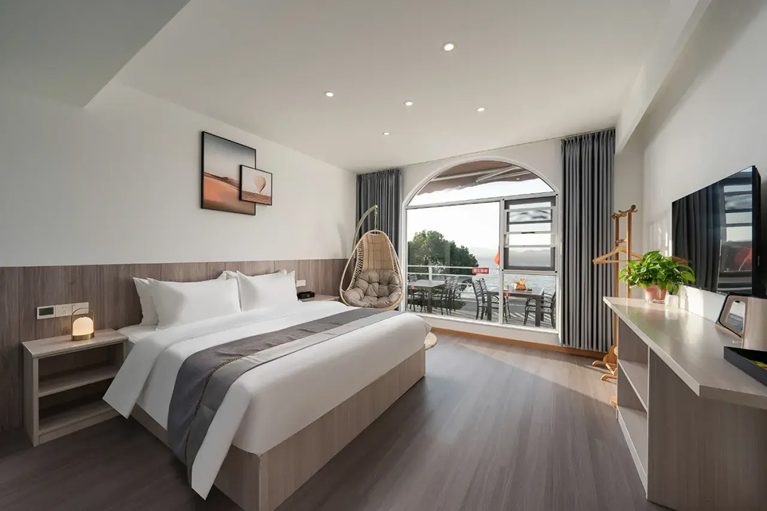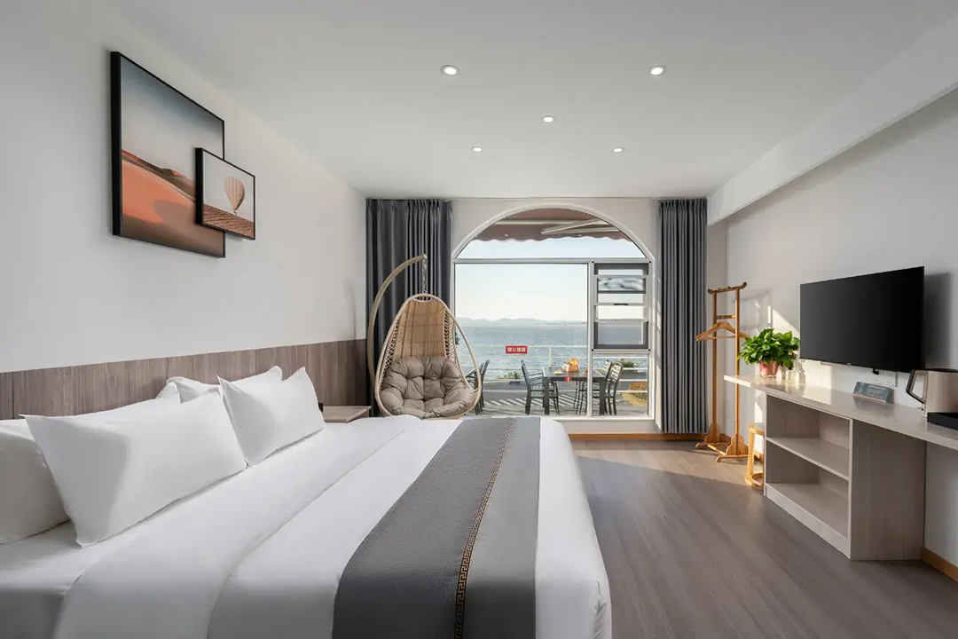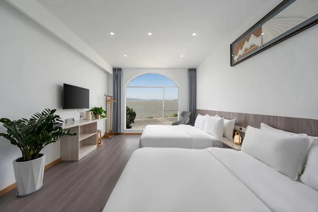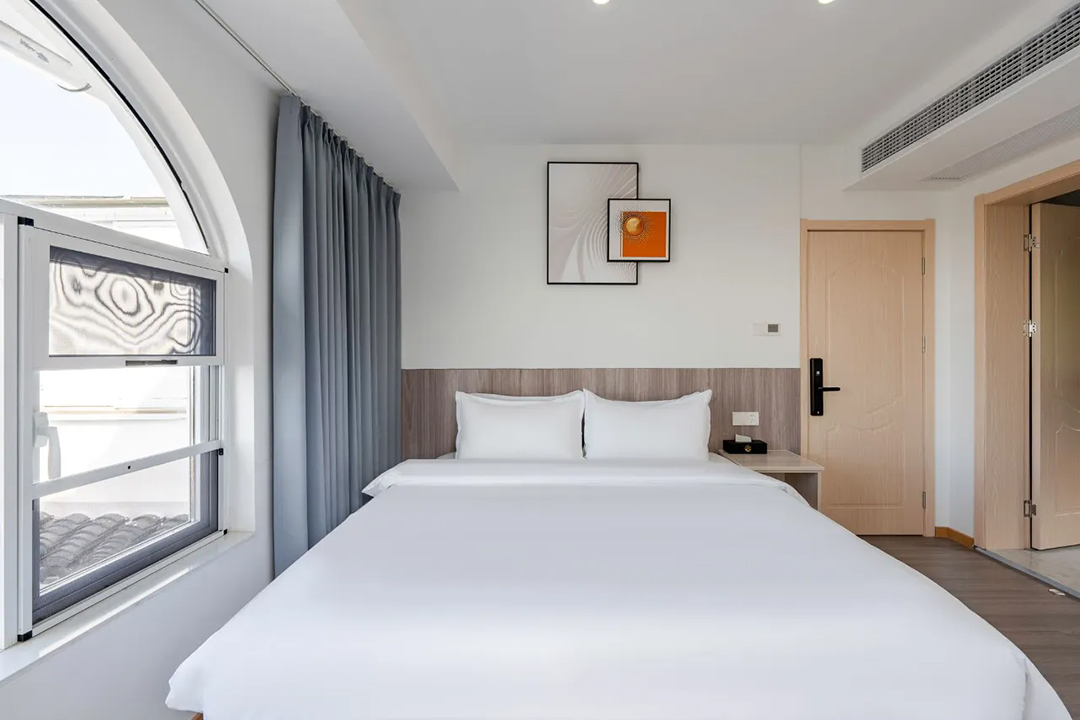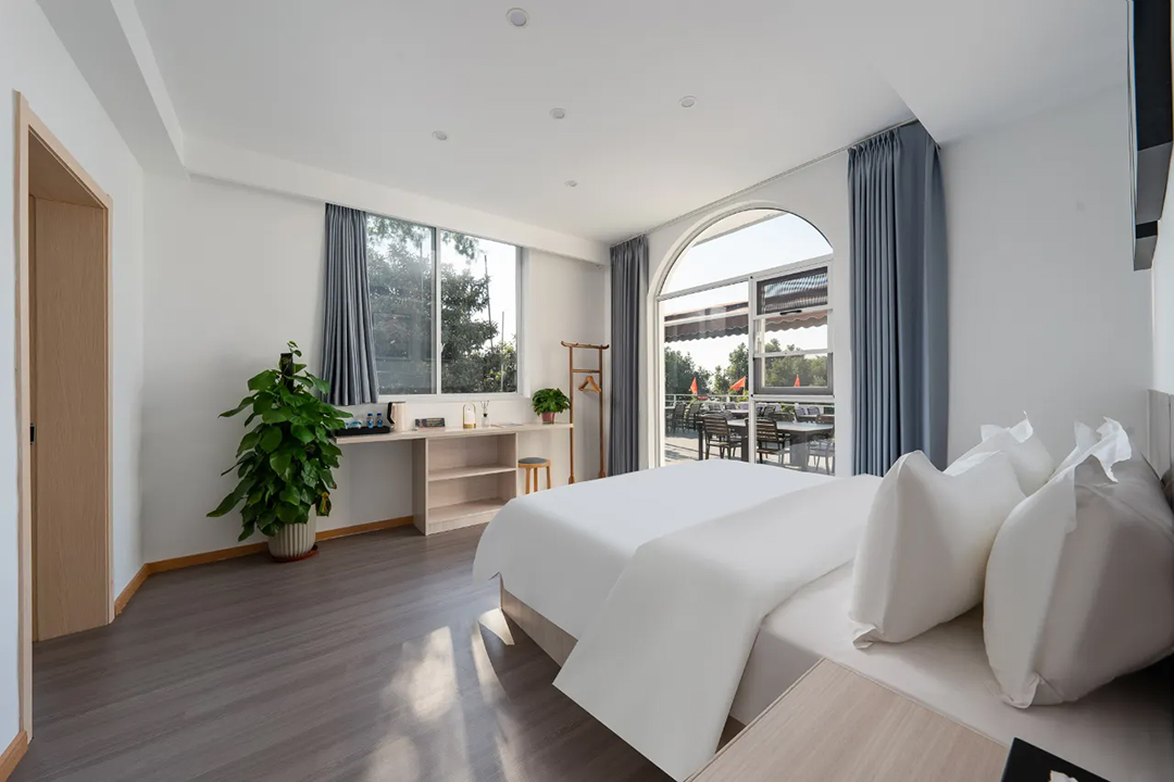 苏州东山遇见拾景精品民宿共有7间舒适客房,设有3间标间、3间大床房和1间亲子间,能同时接待15人入住。室内陈设精简而大气,以白色为主调布局,木质风格家具温润如玉,更有绿植与不同风格挂画做点缀,床上家居也全部都是主人精挑细选,触感柔软舒适;部分客房还安装有落地窗和独立观景阳台,让您足不出户即见太湖烟波浩渺,沉浸式体验乡野的静谧与惬意。