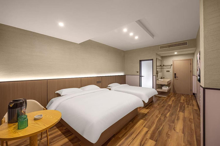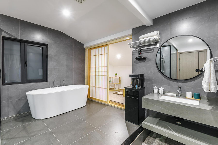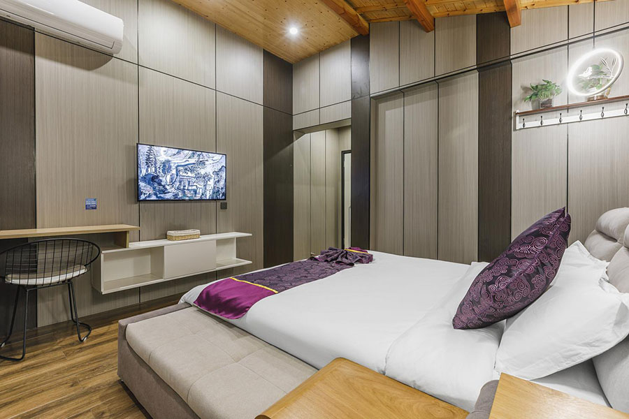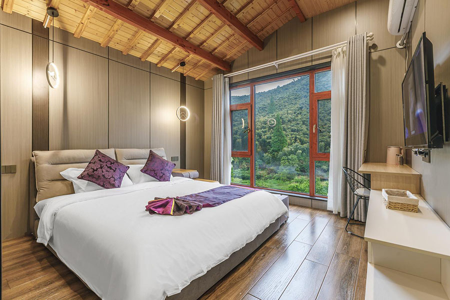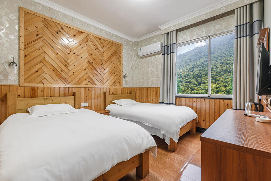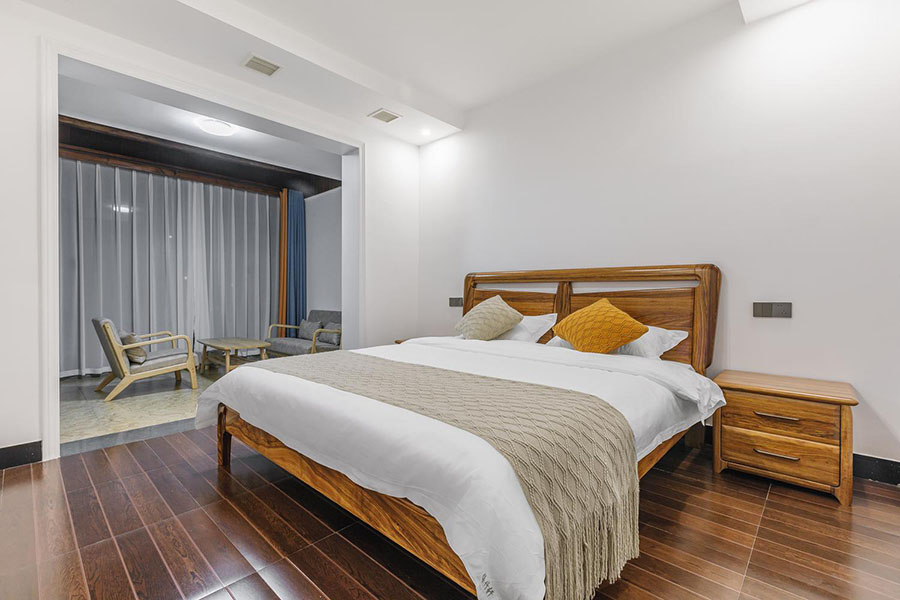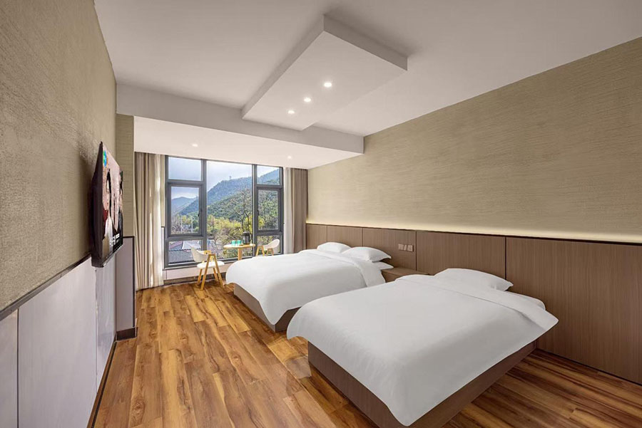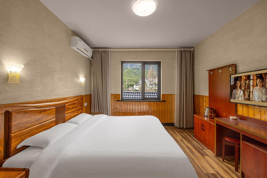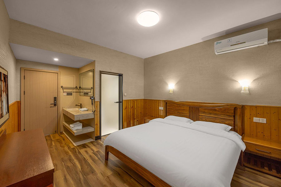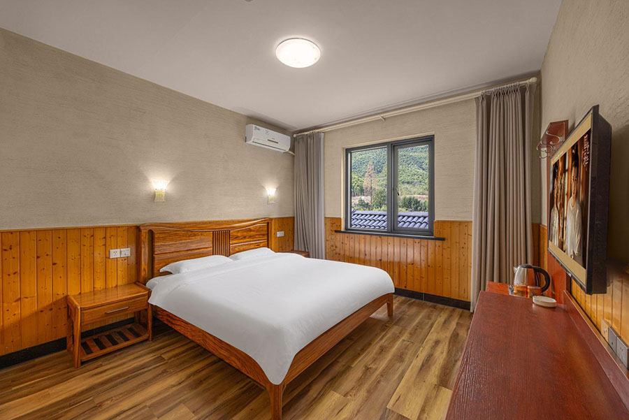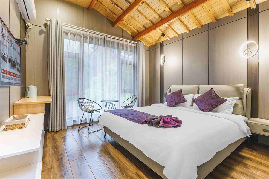 安吉依竹轩酒家身处田园与竹林的环抱之中,窗棂之外即是一幅幅镌秀苍翠的山水竹林画,令人心旷神怡。民宿内为您准备有整洁温馨的休憩空间,共有28间舒适客房,设有18间标间、4间大床房、2间三人间和4间亲子间,能同时接待62人入住。房间属极简原木风设计,均配备有空调、独立卫浴等齐全设施,色调柔和,氛围安逸,在保障您出行便利的同时,也为您带去了乡居的宁静,让您在这里能尽情享受大自然的生动,体验返璞归真的无限乐趣。