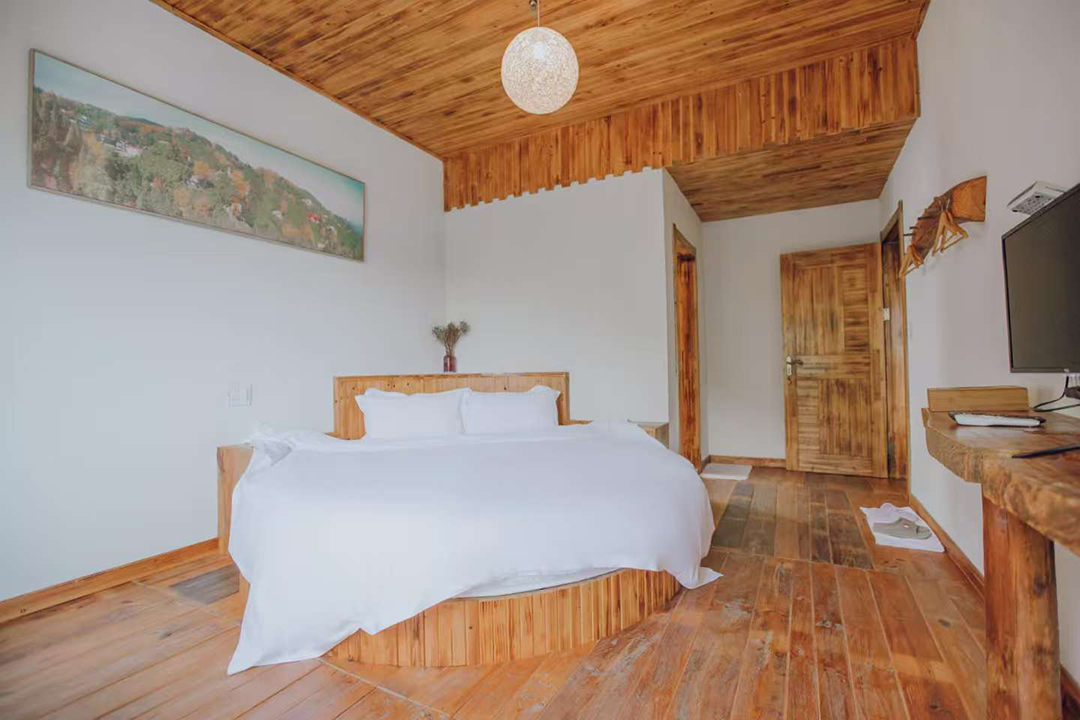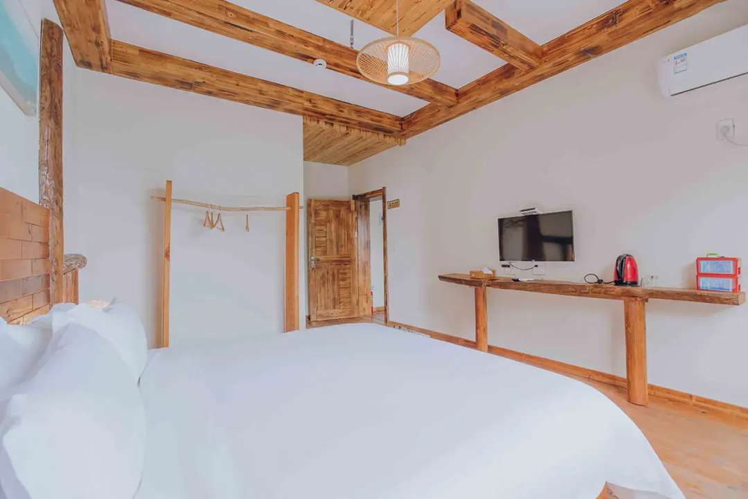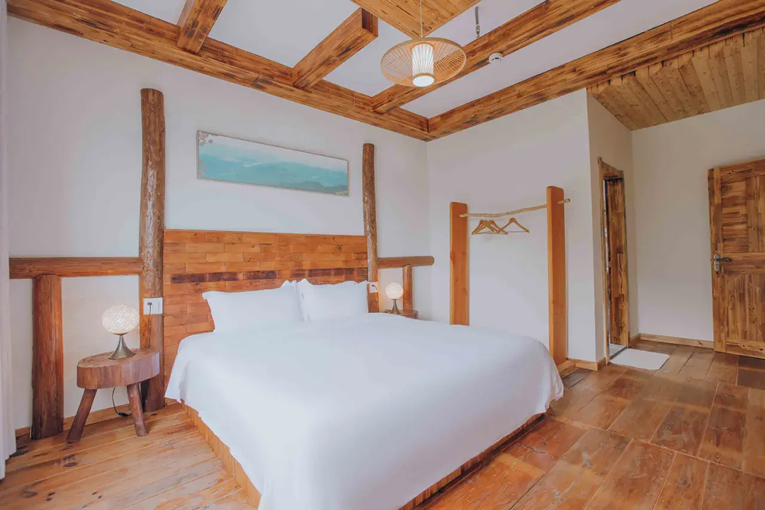 莫干山隐枫精品民宿规模适中,共有8间优质客房,设有2间双人间和6间大床房,能同时接待22人入住、就餐。房间装修风格各具特色,其以中式田园风格为基调,多采用原木家居布局,并用“隐竹”、“水隐”、“山隐”...等自然元素命名。同时精选舒适柔软床品和定制的草本洗护套装,每一处都为您安排的细致入微;部分客房还配备有独立观景露台,让您可将莫干山的晨曦、云海与星空尽数揽入怀中,尽享这慢节奏的休闲时光。