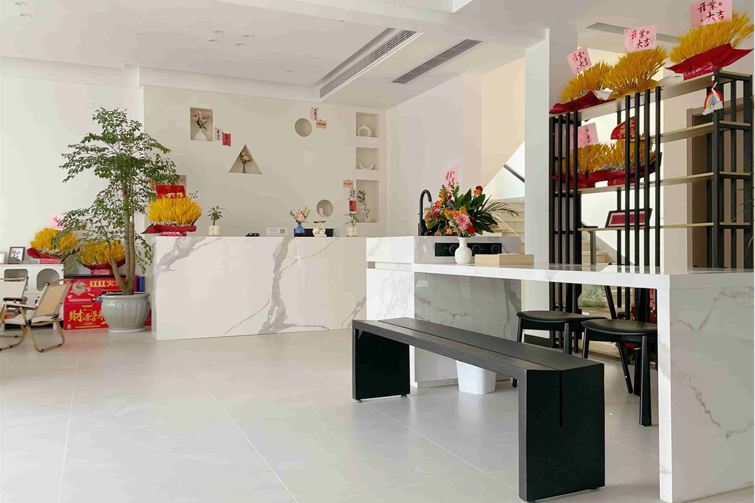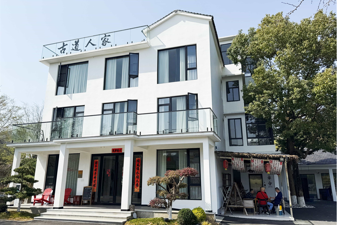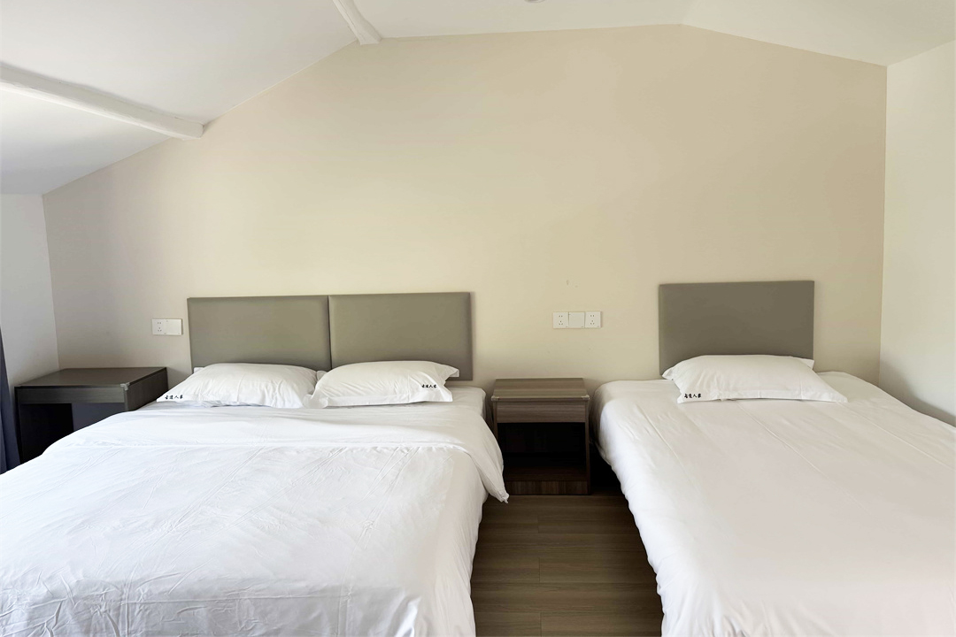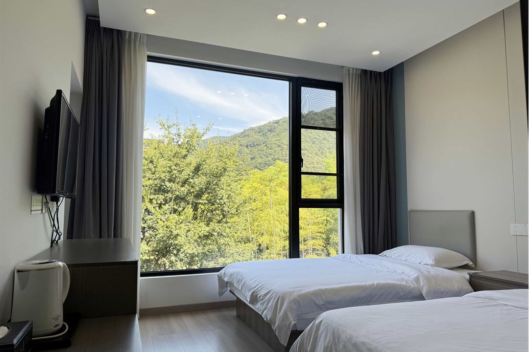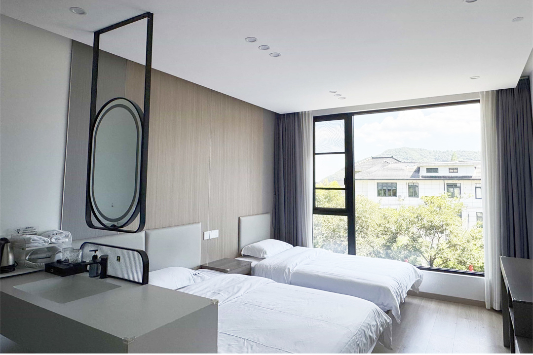 长兴水口古道人家民宿规模适中,共有17间优质客房,设有7间标间、3间大床房、2间三人间、4间亲子间和1个大套间,能同时接待40人入住。房间装修兼具简约与舒适,高级灰搭配纯白的色调,让整个空间都尽显高级大气。整体布局精巧,均配备有齐全的硬件和生活设施,且均安装有通透的观景大窗,足不出户就可见青山绿水之美。房间精选品牌家居,柔软亲肤,确保您住的舒心,也让身心在自然与人文交融的空间中得到彻底放松与滋养。
