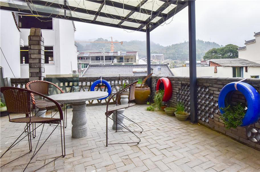 云和梯田云舒客栈以“融于自然”为设计核心理念,将现代简约风格与乡土元素完美交融。缙云石铺就的小径蜿蜒至庭院,沉船老木打造的门窗桌椅沉淀着时光质感,青瓦白墙与周边梯田、青山相映成趣。公共区域开辟有观景露台、休闲茶吧与秋千庭院,可晨观日出、暮赏晚霞,拍照极具氛围感。