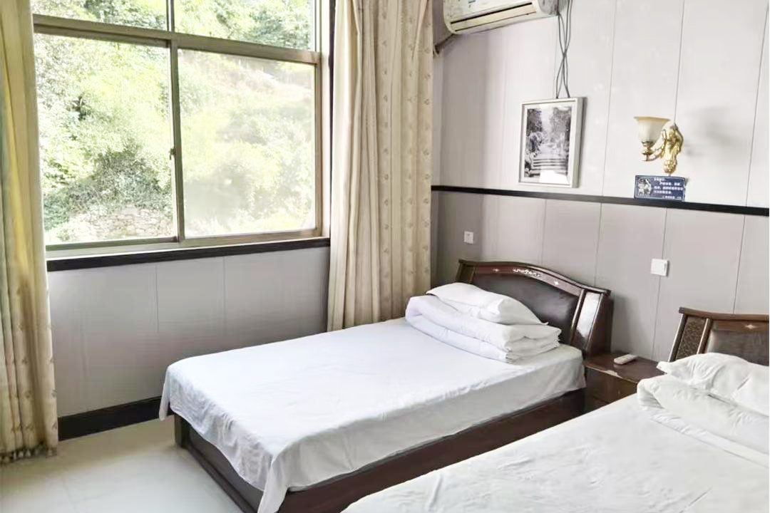 衢江竹园休闲山庄客房装饰精致简约,设施一应俱全,24小时热水、空调、电视及室内Wi-Fi为您提供便捷舒适的入住体验。为您提供有11间优质客房,包括10间标间和1间单间,能同时接待21人入住。房间是标准的酒店式布局,空间宽敞明亮,足不出户就能将窗外的山景竹林尽收眼中,可随时呼吸新鲜空气,感受山林幽静;每天还会安排专人打扫消毒,让您住的安心,用的放心。