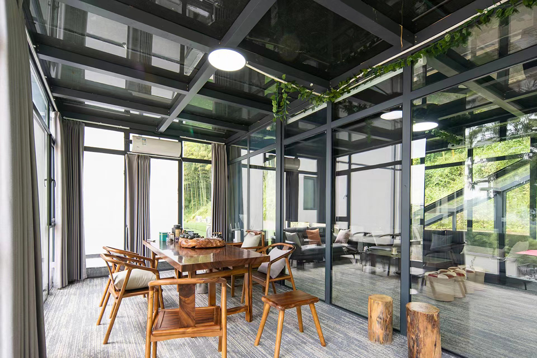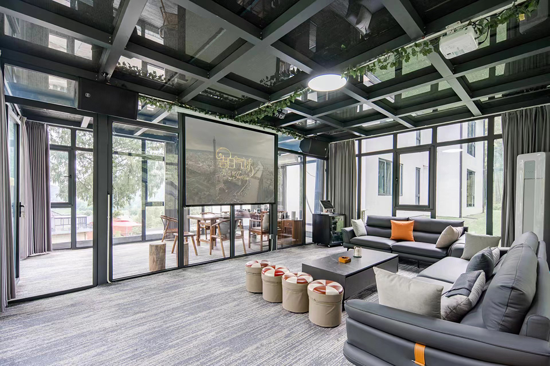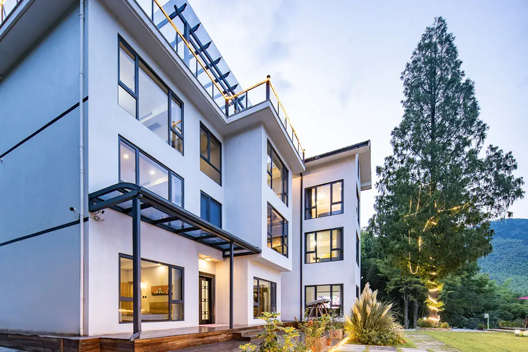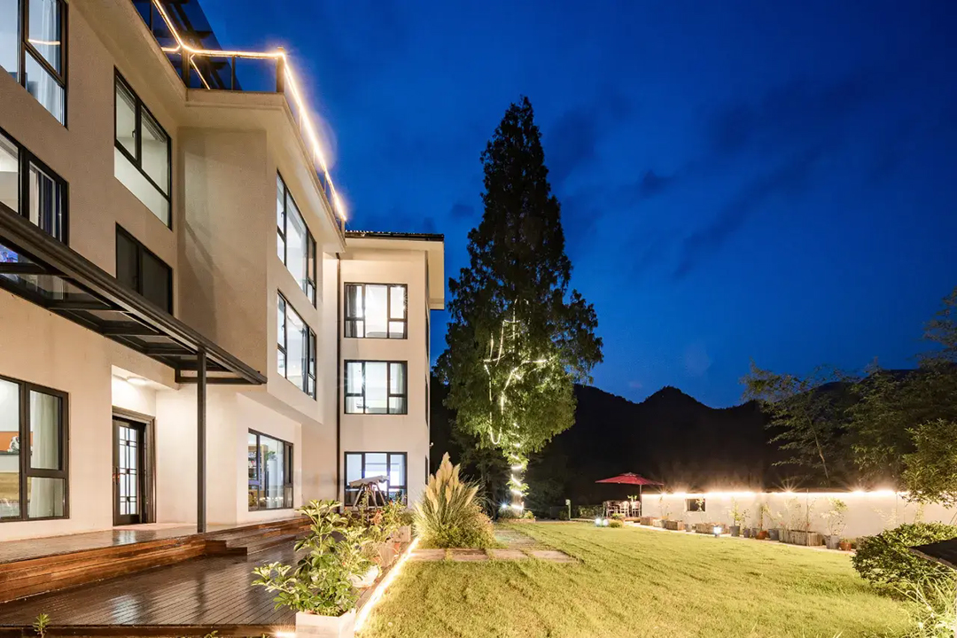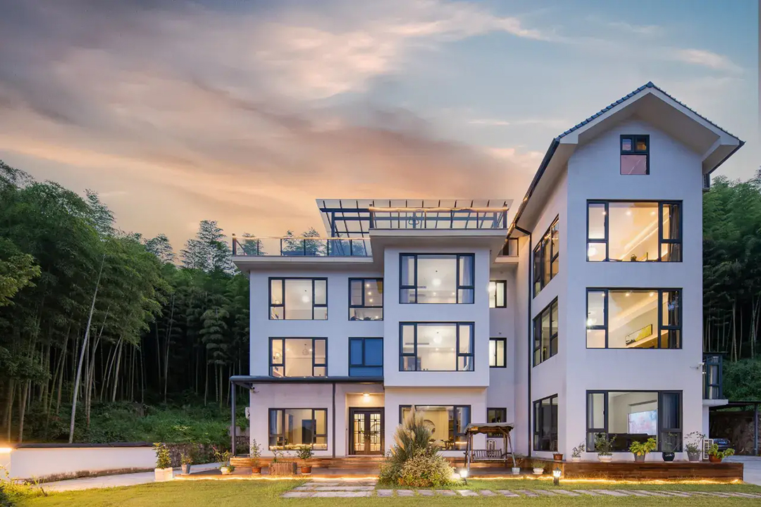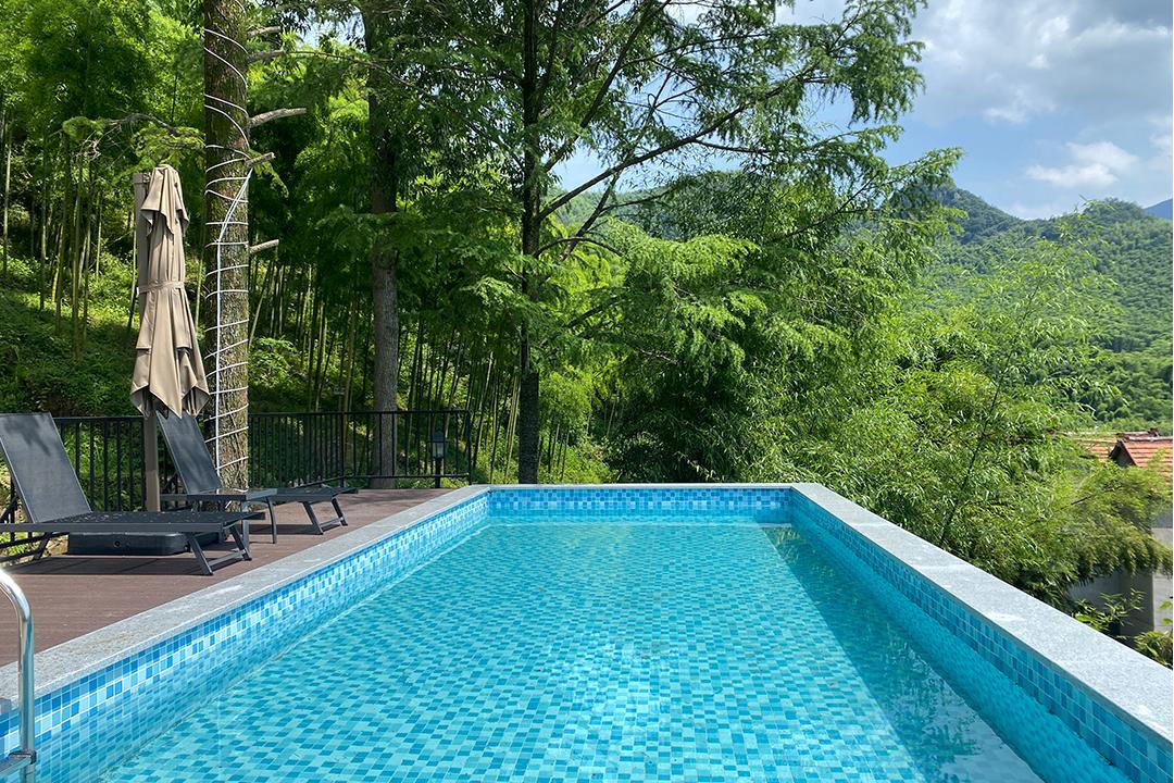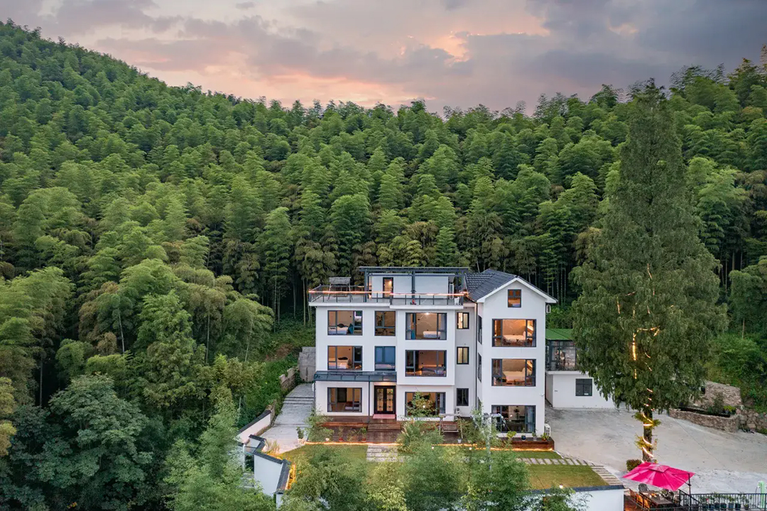 云上草原·竹尚山居景观度假美墅建筑设计遵循“不破坏草木和环境”的宗旨,保留最原始的竹海、山石和溪水源头,用极简的线条勾勒建筑外观,远望宛如山林中自然生长的古村落。民宿四周翠竹环绕,林木葱郁,推窗即是满目绿意,清晨在清脆鸟鸣中醒来,仿佛所有烦恼都被这一抹绿色洗净。除了动人美景外,民宿内还设有无边露天泳池、休闲凉亭、棋牌室、会议茶室、烧烤、电车充电桩等设施,完全可以满足您团建度假的需求。