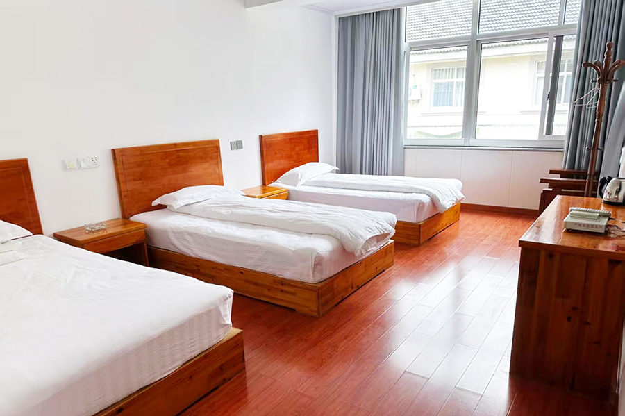 三门潘家小镇为翠民宿规模适中,共有5间客房,包含4间标间和1间三人间,能同时接待11人入住。房间宽敞明净,设施齐全,质朴的原木家具散发着自然清香,柔软的床品确保一夜酣眠,巨大的玻璃窗如同取景框,将窗外的自然风光与山色引入室内,每一处细节都体现了主人的用心,也希望能为您带去一个家庭般的舒适体验。