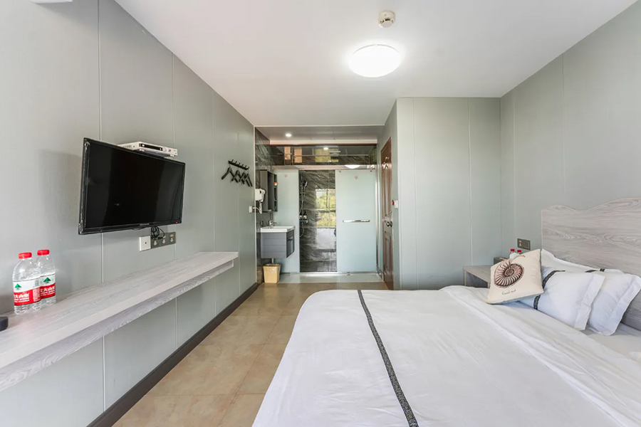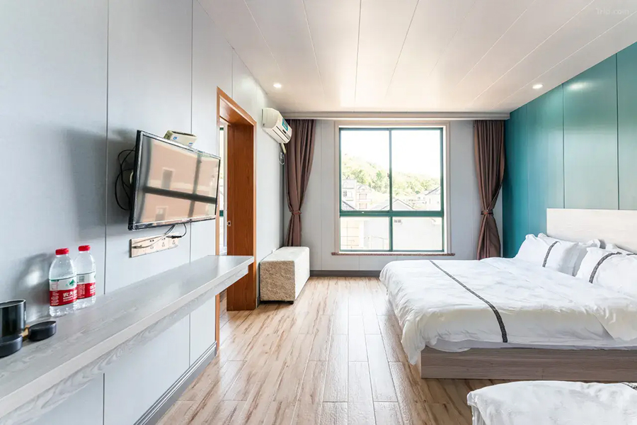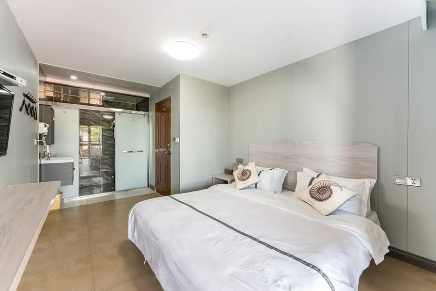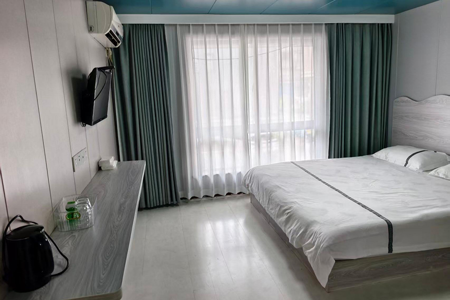 象山石浦海沙明光宾馆整体环境整洁雅致,属独栋的现代别墅建筑,设有宽敞的休闲活动区域,棋牌室(麻将2桌)等娱乐设施一应俱全,满足亲友欢聚需求。宾馆规模适中,内里共有24间客房,设有19间标间、2间大床房和3间三人间,能同时接待51人入住。客房布局合理,采光通风俱佳,原木家居搭配柔和色调,遮光窗帘、柔软床品保障优质睡眠,独立卫浴、24小时热水与无线网等设施一应俱全,部分海景房推窗即可饱览碧波万顷,枕着海浪声入眠的体验堪称治愈。