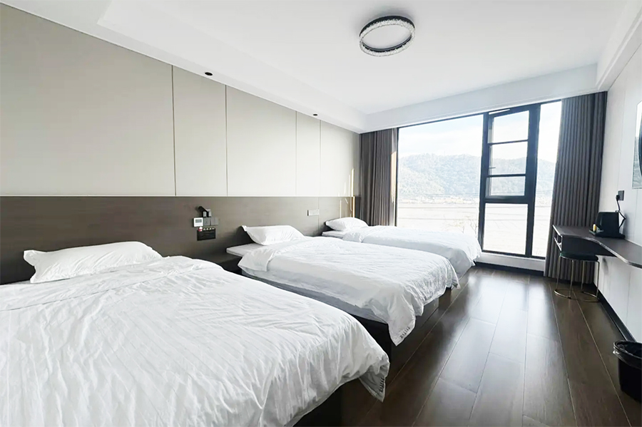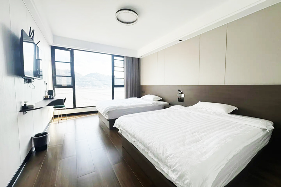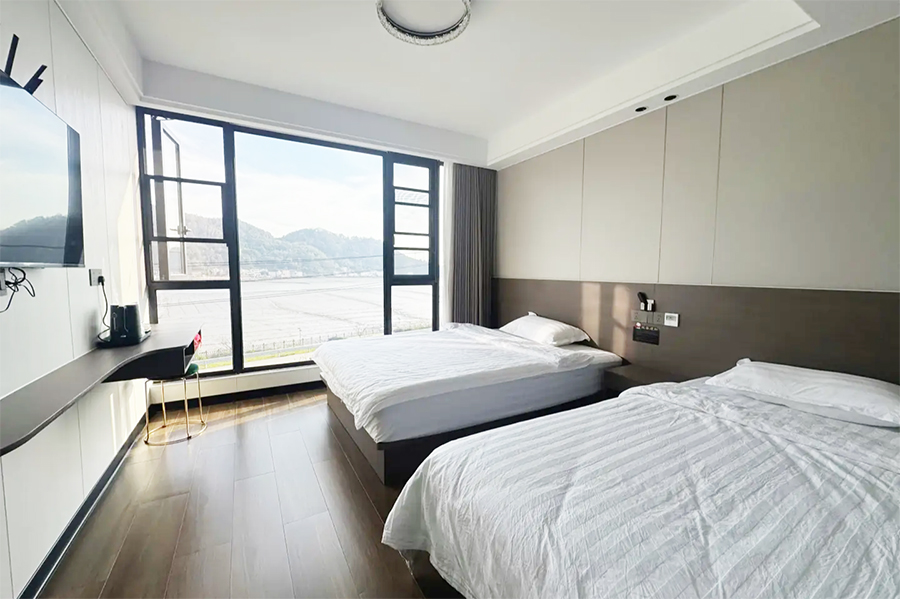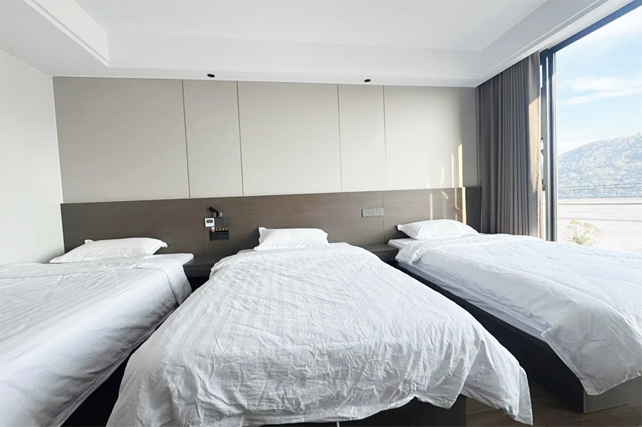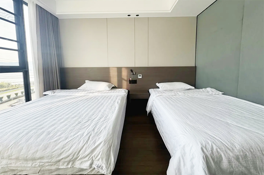 象山若水兰庭民宿共有11间客房,设有6间标间、4间大床房和1间三人间,能同时接待23人入住。客房整体属极简风格设计,采光通透,空间宽敞,以白色为主调进行装修,均设有明亮的观景落地大窗,可将滩涂与山海风光尽收眼底,观景视野绝佳。每间客房都配备有空调、电视、无线网、独立卫生间、24小时热水等设施,定制床品亲肤柔软,保证您入住的舒适度,让您在山海间可收获家的暖意,静享远离喧嚣的松弛时光。