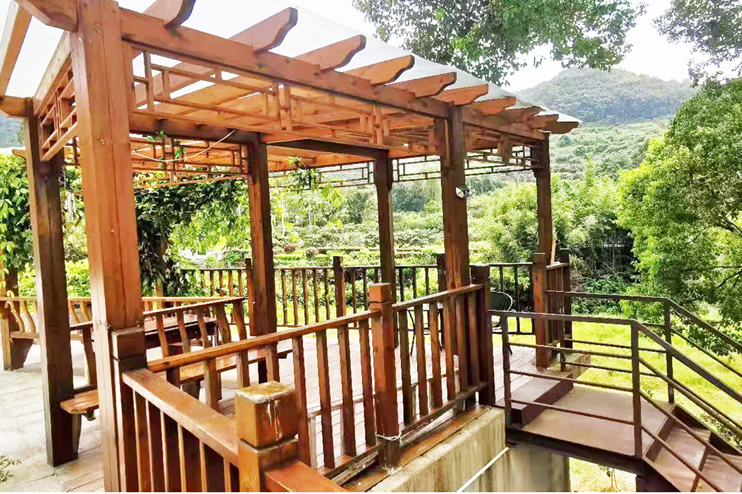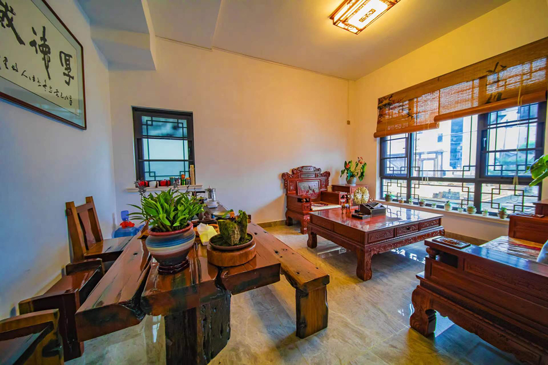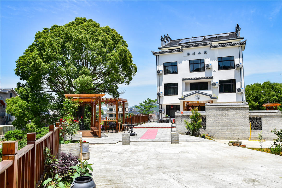 象山博瑶小筑民宿建筑风格独具匠心,三层楼高的黑白相间房屋呈现一派中西结合的徽派建筑风格,飞檐灰瓦的古韵在村庄里独树一帜。民宿占地面积广阔,拥有独立的宽敞庭院,院内硬化、绿化区域分明,花草树木长势旺盛,为院子增添了无限生机。低矮的围墙木门外是淳朴自然的美丽风景,院内是宁静安详的桃源农家。
