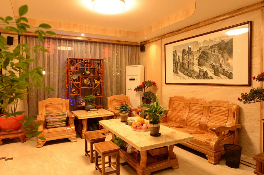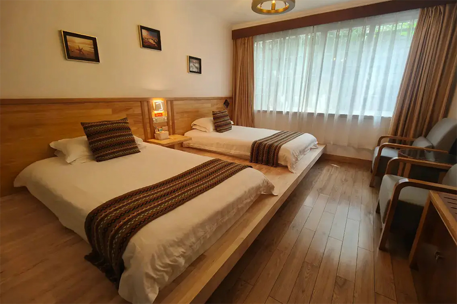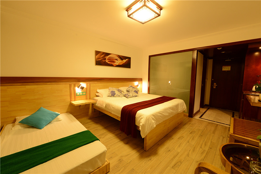 客房规格:能同时入住30人,房型标间4间,大床房2间,家庭房6间,房间均配有中央热水器,24小时供应热水,床单被套一客一换,严格消毒。