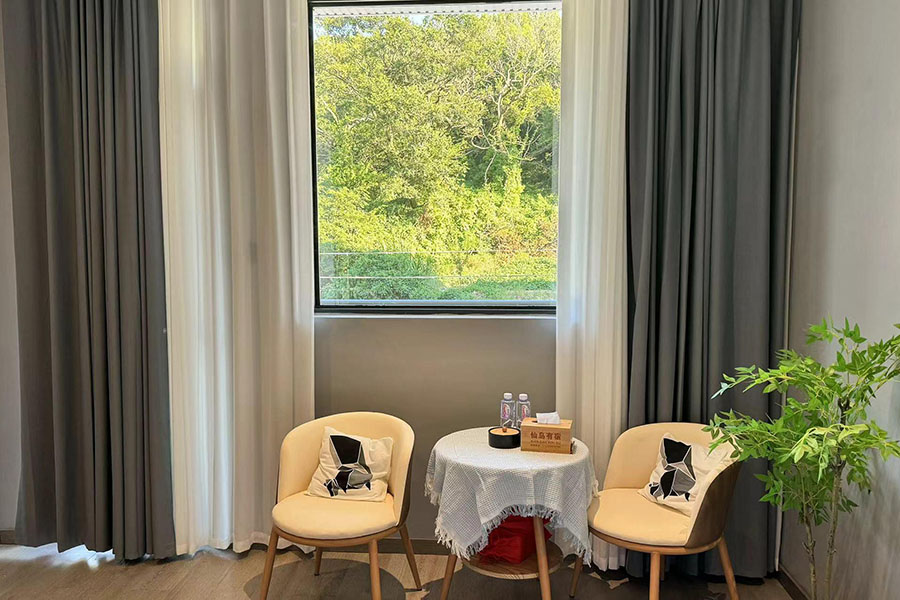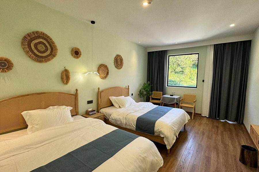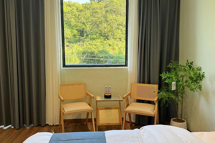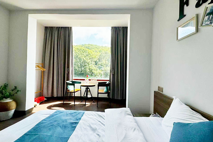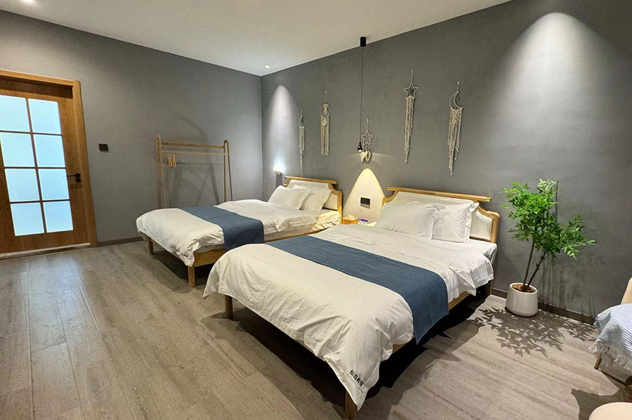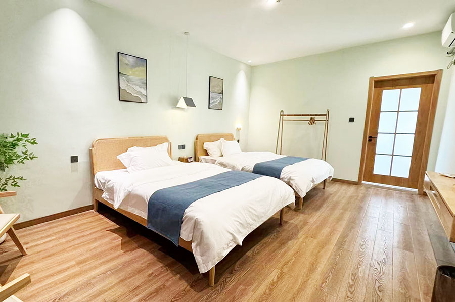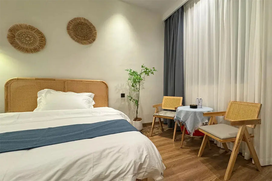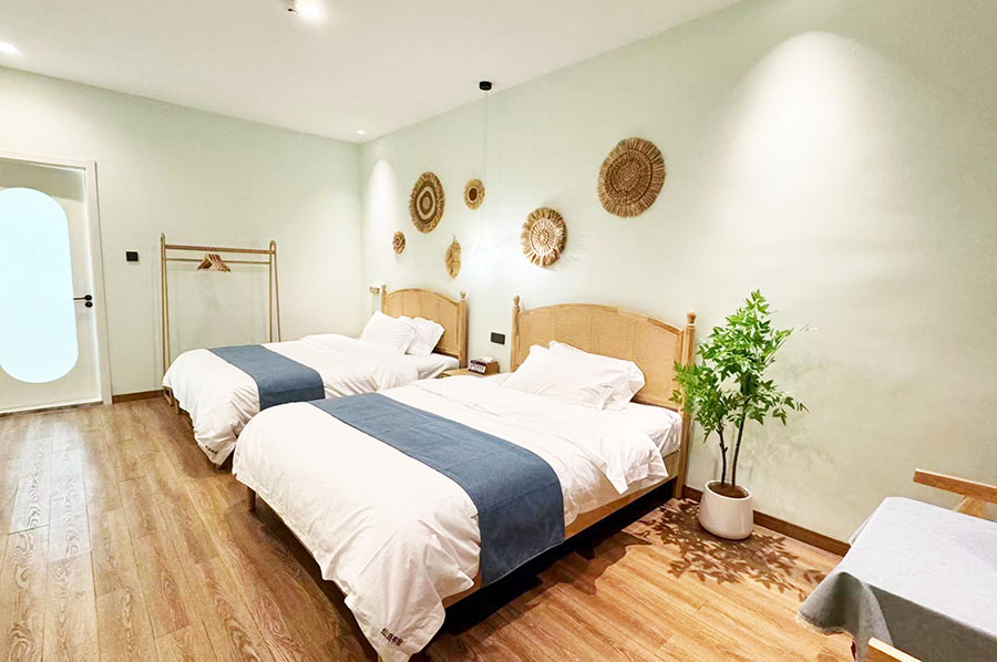岱山仙岛有宿共有9间优质客房,设有7间标间和2间单人间,能同时接待16人入住。房间设计清新自然且风格多变,依旧延续了蓝白经典配色,同时点缀有丰富的海岛元素和田园ins软装,好似将一片碧海晴空搬进了室内。这里每间客房都配备了齐全的硬件和生活设施,一整面观景玻璃的设计,能让您推窗即览山海盛景;午后还能坐在露台的藤椅上,泡一壶香茗,看云卷云舒,听海风呢喃,彻底卸下都市的疲惫,尽享慵懒惬意的度假时光。