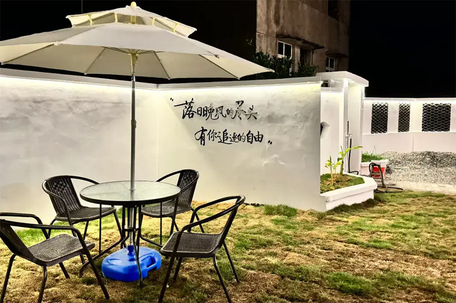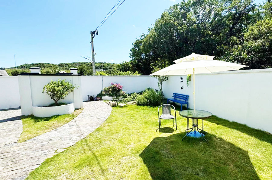 岱山仙岛有宿整体采用现代简约与海岛风情相结合的设计风格,纯白色的独栋海岛别墅,与碧海蓝天有着天生的默契,宽敞的花园小院内阳光温暖明亮。走入其中,好像进入了一个与世隔绝的世外桃源,蓝白相间的长椅、凉亭布置,有着浓郁的海滨风情。即使夜幕降临,院子内也宛若白昼,氛围感拉满,拍照也超级出片,非常适合家庭以及团建出游选择。
