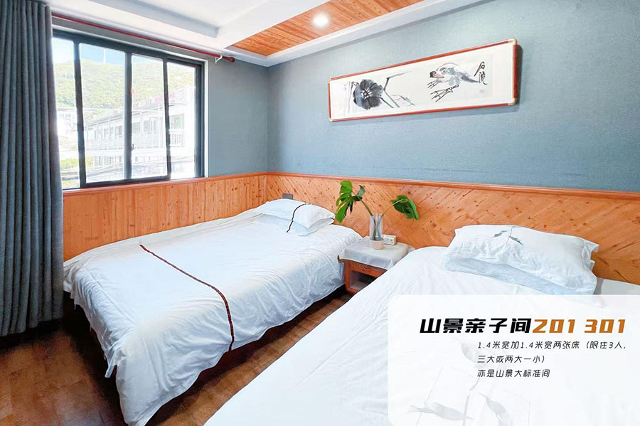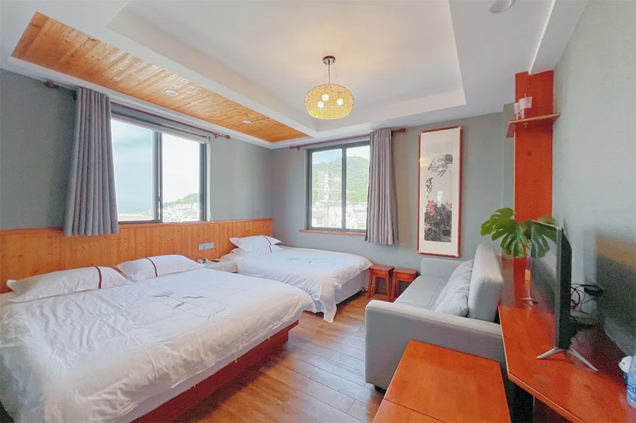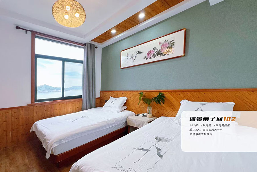 岱山海天壹色民宿共有11间客房,设有1间单人间、4间标间、3间大床房和3间家庭间,能同时接待21人入住。房间是暖调的原木风装饰,从设计到家具,每一处都是主人精心布置,每间客房都配备了空调、电视、无线网、独立卫浴、24小时热水等设施,居住环境温馨,且拥有绝佳的观景视野,足不出户就能一览无余海岛风光,领略海天一色的盛景。这里不仅确保您住宿的洁静与安心,也能带给您不一样的海滨游玩体验。